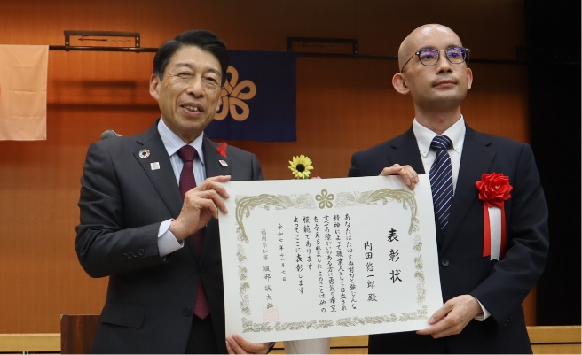 ▲知事、受賞者の内田悠一郎氏